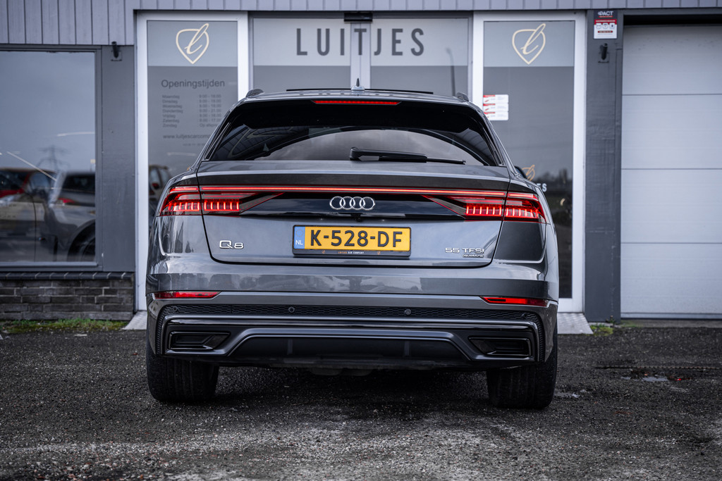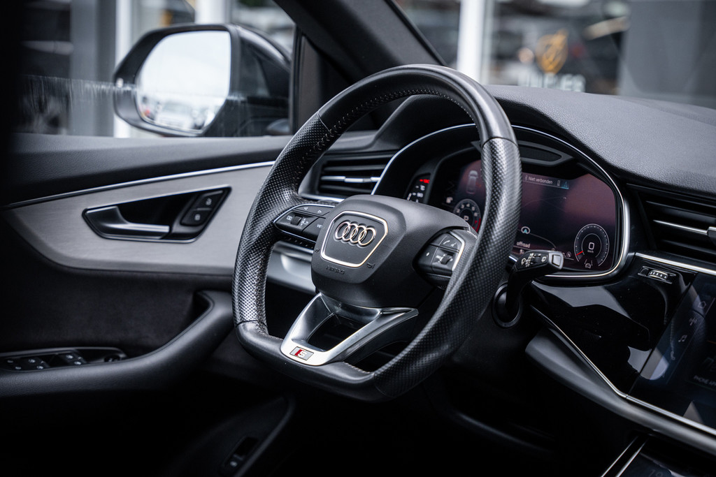 Auto's als deze Audi Q8 bieden tegelijk rijdynamiek, comfort en degelijkheid. Voor de echte liefhebber is de S-line styling natuurlijk een dikke plus en musthave. Onder de motorkap ligt de krachtige 3.0 V6 TFSI benzinemotor met maar liefst 340 pk, gekoppeld aan de soepele Tiptronic automaat en het legendarische quattro vierwielaandrijvingssysteem. Dit resulteert in indrukwekkende prestaties én maximale grip onder alle omstandigheden. Bovendien beschikt deze Q8 over een 3500 kg trekgewicht en een elektrisch wegklapbare trekhaak – ideaal voor caravan, trailer of boot.