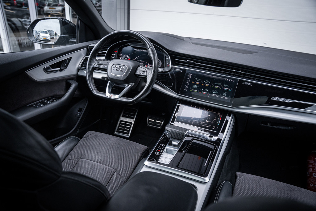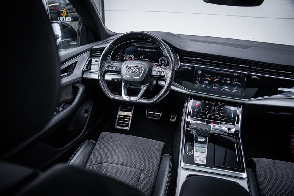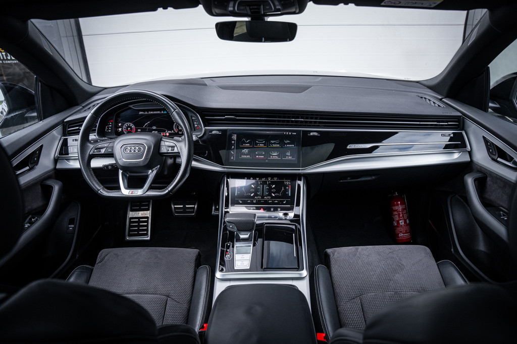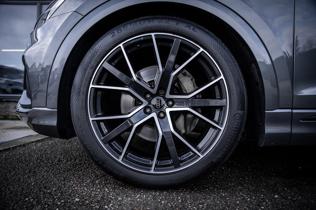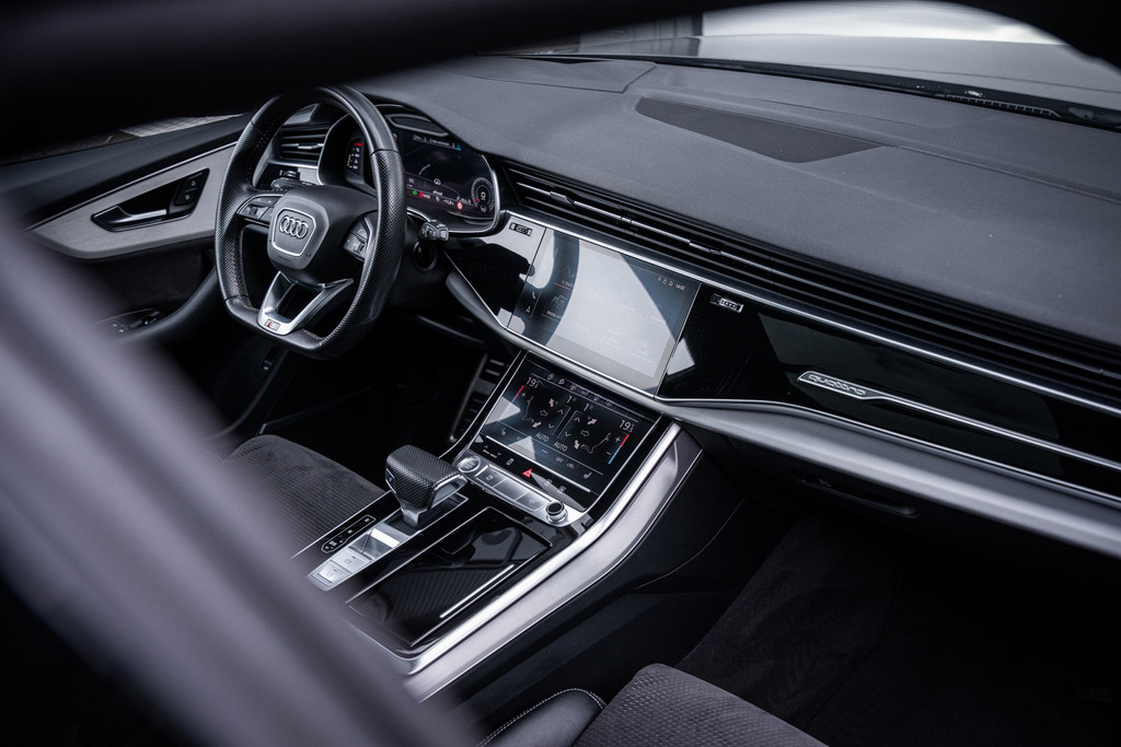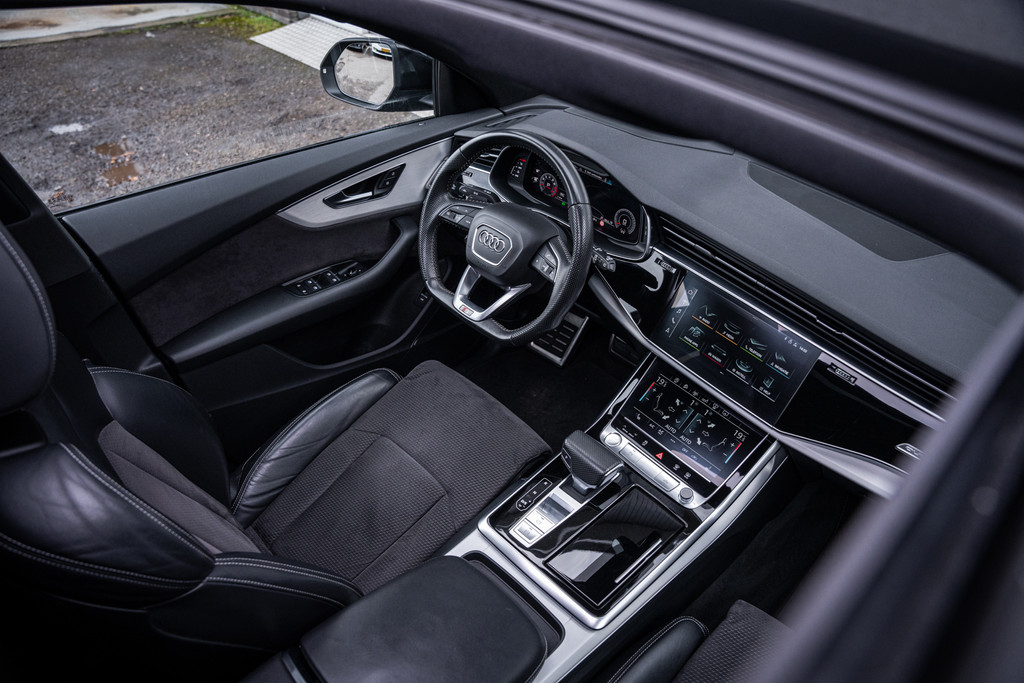 De uitvoering in Daytonagrijs pareleffect in combinatie met het sportieve S-Line exterieur en de imposante 22 inch lichtmetalen velgen geeft deze Q8 een krachtige en exclusieve uitstraling.
