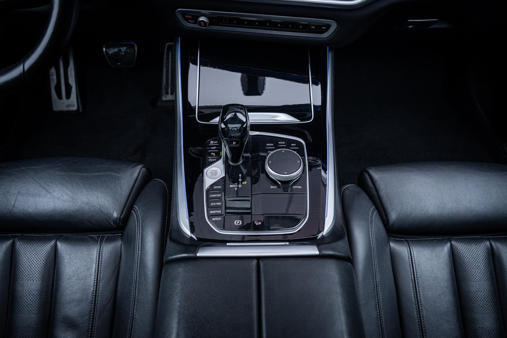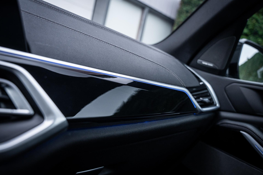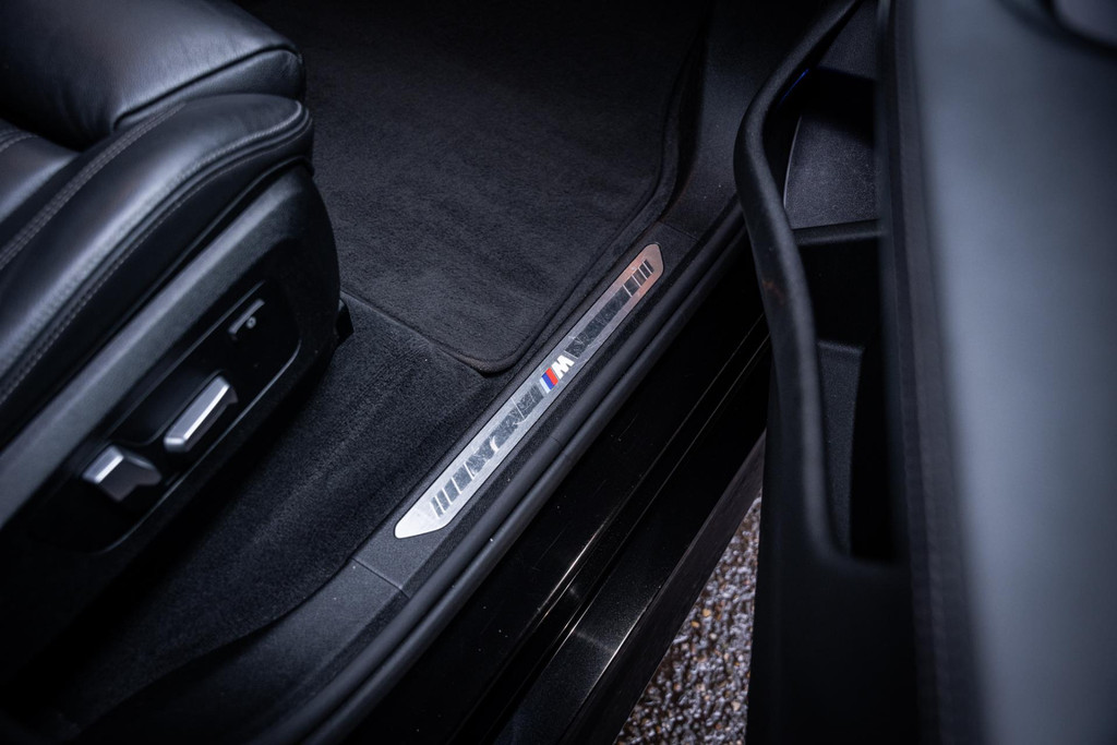 SAPHIRSCHWARZ METALLIC kleur wat ook is afgewerkte met zwarte accenten en 22 inch M-performance wielen. Als we de deuren openslaan zien we het dikke Vernasca lederen interieur, heel gaaf!