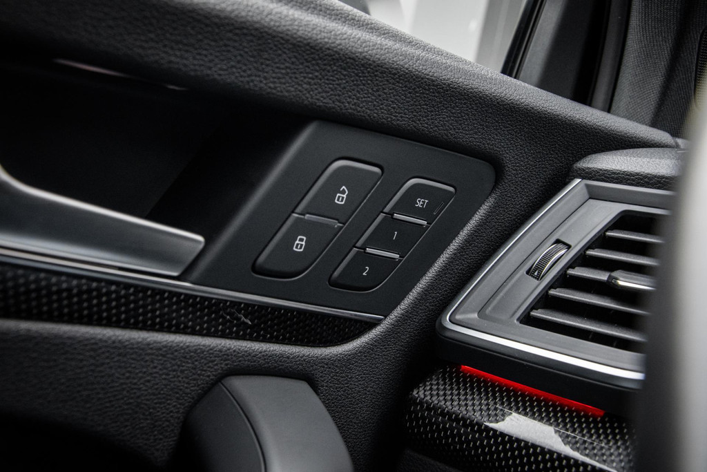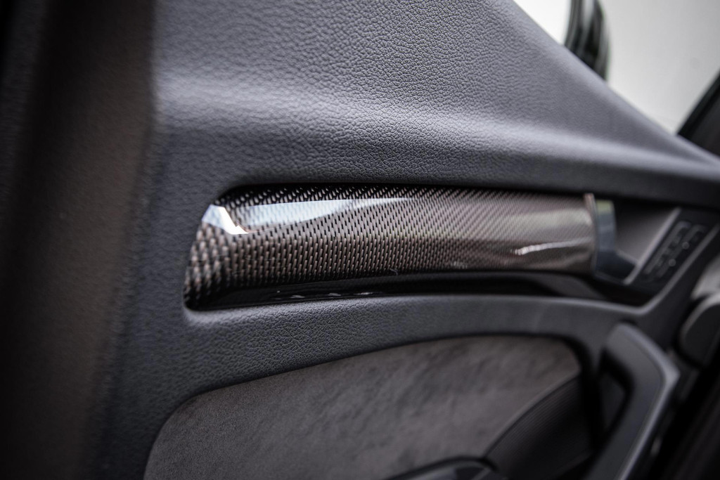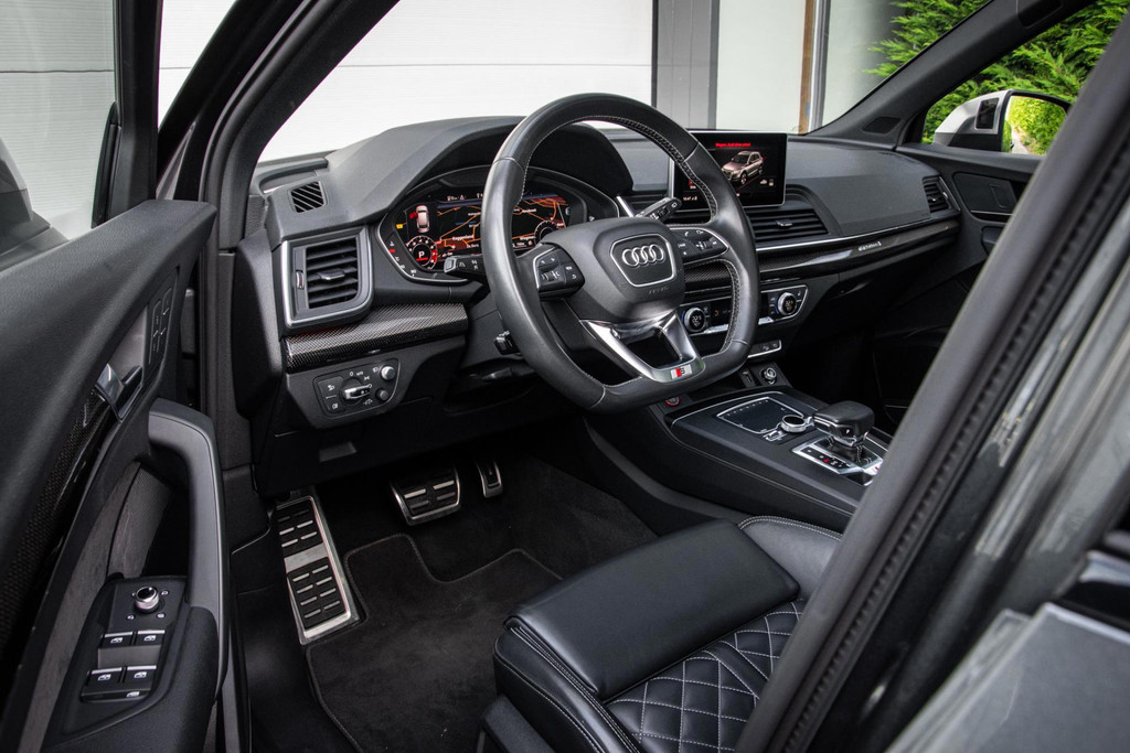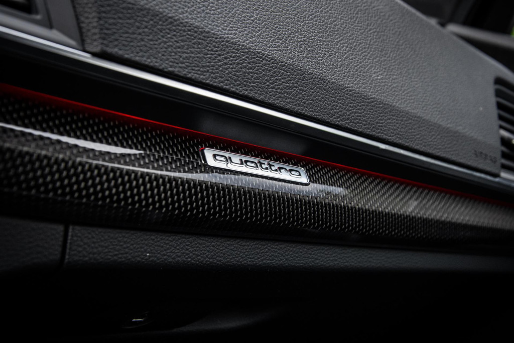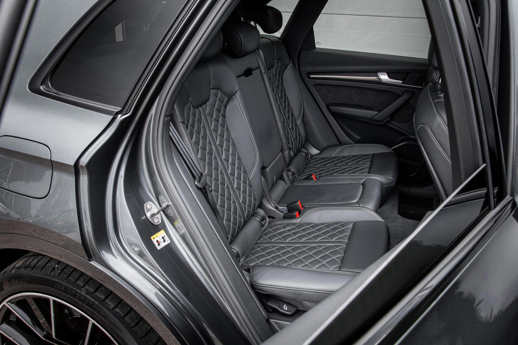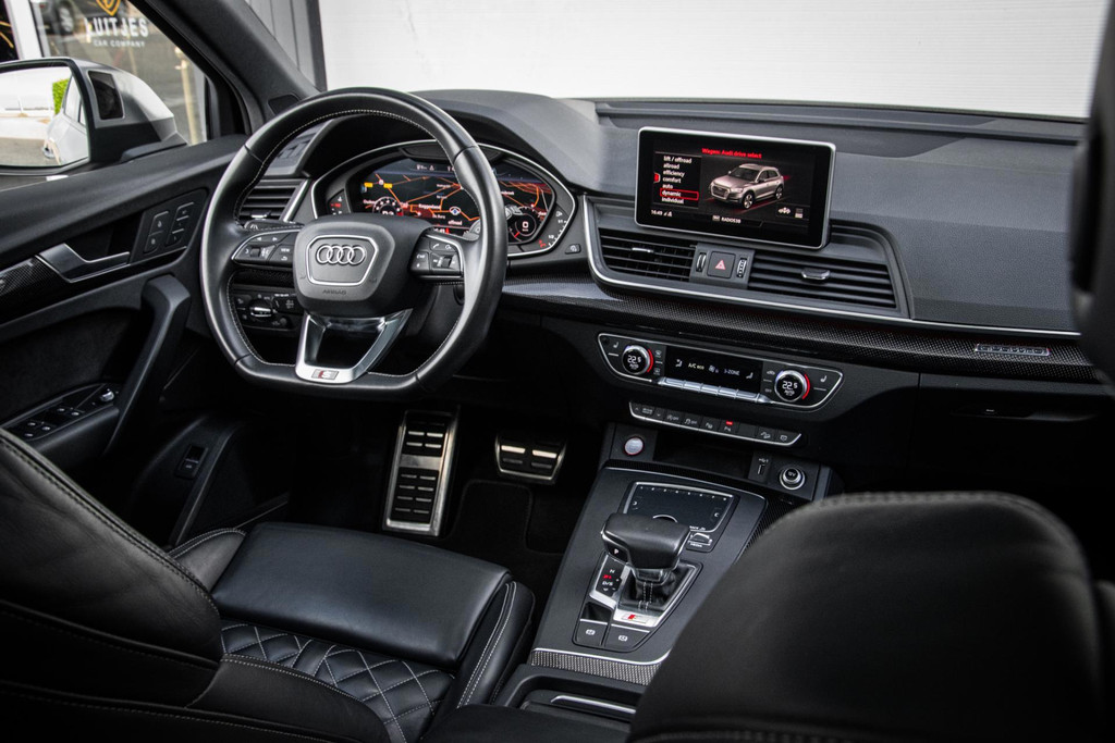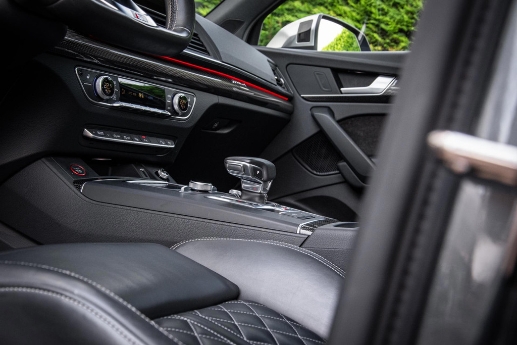 Rijd je een Audi SQ5, dan maak je indruk in welke zin dan ook! Deze Audi heeft zichzelf een chique jasje aangemeten: Daytona Grey in combinatie met de zwarte accenten, rode remkaluwen en 21inch wielen maken een - in de basis - brute machine geraffineerd in zijn voorkomen. Ook aan de binnenzijde zijn er onderscheidende keuzes gemaakt. Het zwarte leder welke ruitvormig gestikt is (De welbekende RS-Zetels) spiegelt mooi af tegen de carbon delen. Het is weer eens wat anders.