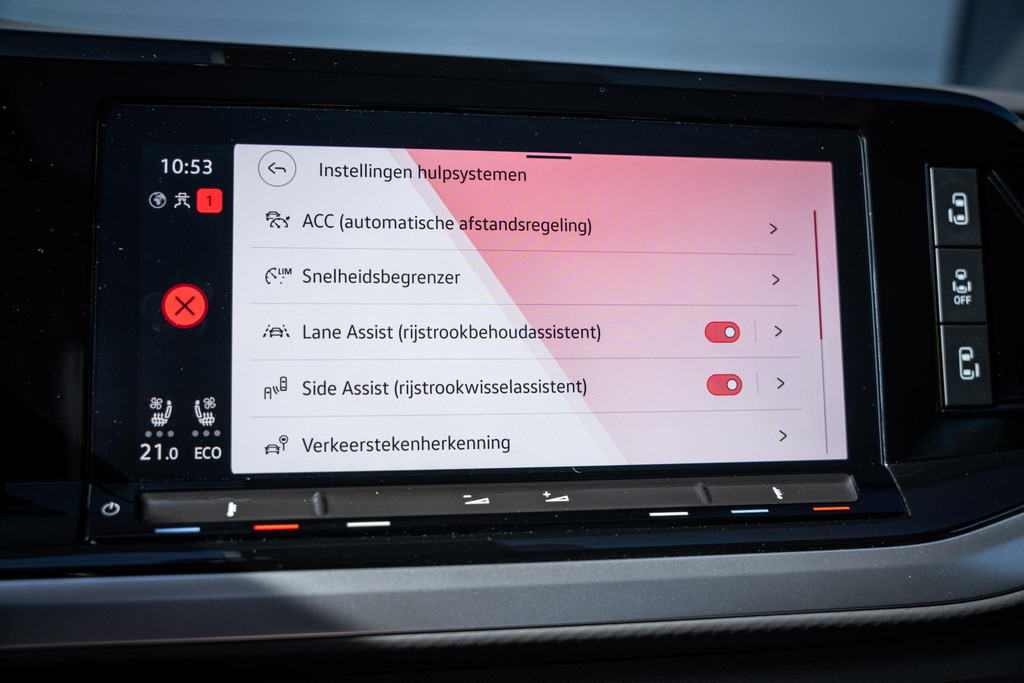 Veiligheid en assistentie zijn maximaal aanwezig met onder andere Lane Assist, Front Assist, verkeersbordherkenning en een uitgebreid parkeersysteem met achteruitrijcamera.