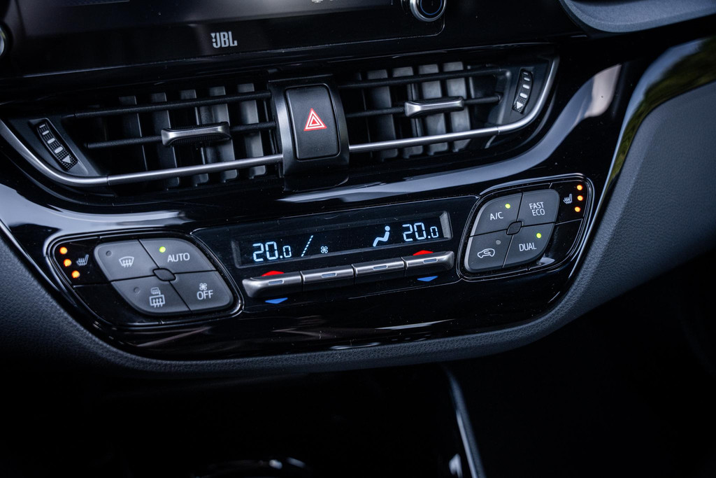 Dankzij de combinatie van een benzinemotor en elektromotor rijdt deze C-HR deels volledig elektrisch bij lage snelheden, wat zorgt voor een stille en comfortabele rijervaring in de stad. Tijdens het remmen en uitrollen wordt energie teruggewonnen (regeneratief remmen), waardoor de accu automatisch wordt opgeladen—je hoeft dus nooit te stekkeren.